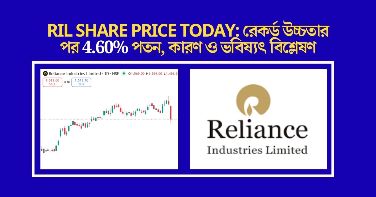RIL share price সাম্প্রতিক সময়ে শেয়ার বাজারে আলোচনার কেন্দ্রবিন্দুতে রয়েছে। সর্বকালের সর্বোচ্চ স্তরে পৌঁছানোর ঠিক পরদিনই রিলায়েন্স ইন্ডাস্ট্রিজ লিমিটেড (Reliance Industries Limited – RIL) এর শেয়ারে বড়সড় পতন লক্ষ্য করা গেছে। এই পতনের পিছনে একাধিক আন্তর্জাতিক ও কর্পোরেট কারণ কাজ করেছে, যার মধ্যে রয়েছে রাশিয়ান অপরিশোধিত তেল সংক্রান্ত রিপোর্ট এবং কোম্পানির পক্ষ থেকে তার কড়া প্রত্যাখ্যান।